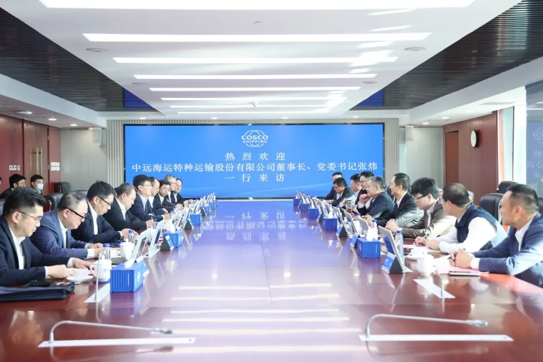 中远海运特运董事长、党委书记张炜带队拜访中远海运物流供应链,中远海运物流供应链董事长、党委书记纪海东,董事、总经理马晓东热情接待了特运一行。
